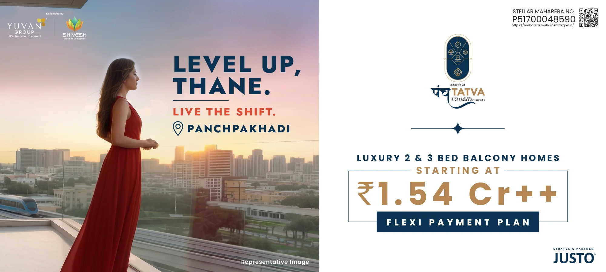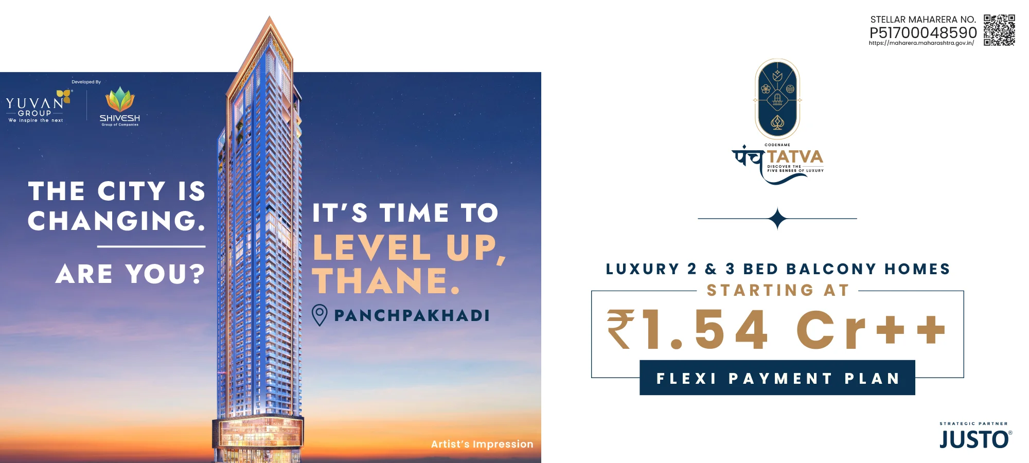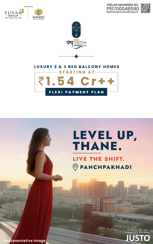 Codename Panchatatva by Yuvan Group stands 57 storeys tall in the esteemed neighbourhood of Panchpakhadi, Thane, bringing together residences, commercial spaces, shops and penthouses in one distinguished address. Its graceful height and clean design give the tower a presence that feels both prominent and refined.