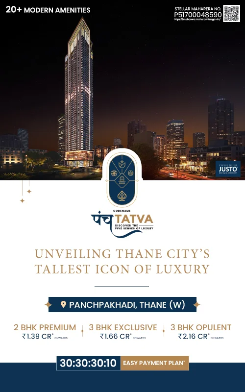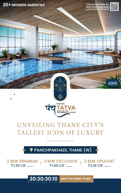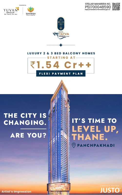 Codename Panchatatva by Yuvan Group stands 57 storeys tall in the esteemed neighbourhood of Panchpakhadi, Thane, bringing together residences, commercial spaces, shops and penthouses in one distinguished address. Its graceful height and clean design give the tower a presence that feels both prominent and refined.